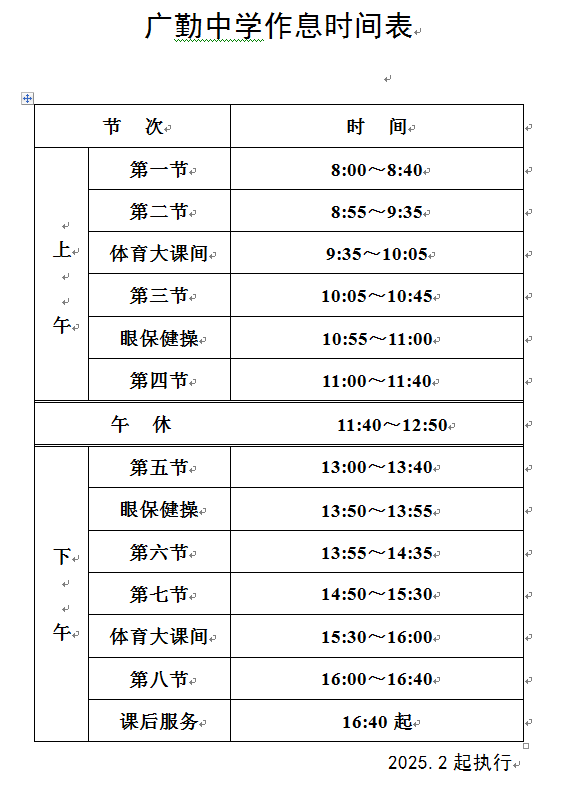 2025-2026学年春学期作息时间